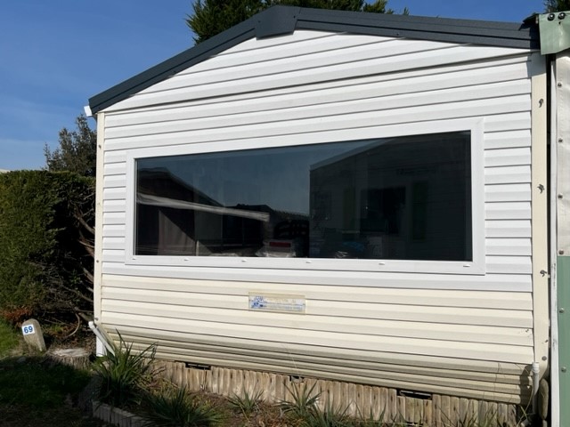 - Fenêtre PVC, épaisseur 4-16-4, adaptée selon l'épaisseur des murs du mobile home, fabriquée sur-mesure.